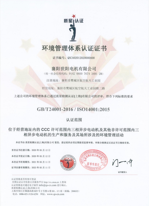 環(huán)境管理體系認(rèn)證證書